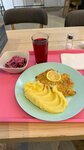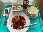 Ходила на бизнес-ланч. Все блюда понравились. Очень вкусно, всё горячее. Обед стоил 330 рублей. Полностью я его конечно съесть не смогла 😅, порции хорошие, котлеты большие. Вот фото моего обеда. Там ещё можно брать бесплатно хлеб и сухарики к супу и зелень. Обстановка приятная, можно сидеть на диванах или на стульях. Персонал вежливый, приветливый. Посуда чистая, никаких нареканий нет. Буду ходить ещё.