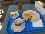 420 рублей!!! Ложка пюре, вот уж очень постаралась Дама на раздаче и размазала таки по тарелке)) - не вкусно, пюре- одно название, ни молока там, ни масла, абсолютная безвкусица!! Ложка салата, реально одна столовая ложка, и без горки даже)) - есть можно, но очень мало! Минтай - рыбка вкусная, но испорченная солью, и вот маринад этот сладкий и сухой не спасает, а подчёркивает солёные стороны рыбки)) Компот- отдельная история))) Стаканчик так мал, а Компот так безвкусен, что это сочетание - ну просто идеально))) Вообщем, конечно я не наелась, обед был испорчен этой столовой...но настроение приподнялось, потому что всегда мне смешно, когда пюре и компот- одна вода)) Ребята, что там работаете, не жадничайте, готовьте как положено, и будет вам уважение и возможно 5 звёзд. А пока только 1 звезда.