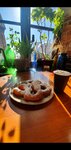 Вполне вкусные небольшие пышки с присыпкой сахарной пудрой, можно заказать к ним топпинг. Большой выбор напитков, кофе. Есть и другие вкусняшки. Внутри два столика со стульями, три столика-стойки. Можно и на улице посидеть, есть четыре столика. Но тут надо аккуратно, Кронштадтский ветер может порывами обсыпать вас сахарной пудрой)) вид из кафе шикарный, на корабли парка Патриот и действующий флот.