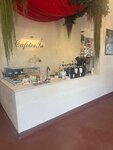 A small cozy space in the city center. I recommend you to treat yourself to desserts and coffee before the performance at the LERMONTOV Theater, near which it is located. The waiters are polite, and the order arrives quickly. The main focus is on a small dessert, not a full dinner.