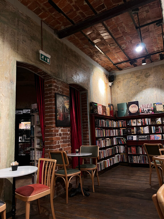 Очень кайфовое и атмосферное место! Книжный магазин вместе с кофейней. Похоже на нашу Республику, но более интересное. Вкусный кофе ☕️