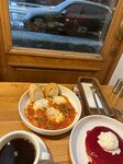 Awesome shakshuka and rasberry pancake. Great atmosphere. Very friendly and helpful staff. No waiting time. Meals were served quickly. Coffee was ok