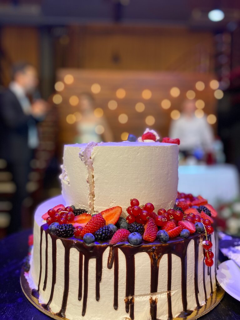 Натуральный торт с капкейками на свадьбу, без мастики, со свежими ягодами.