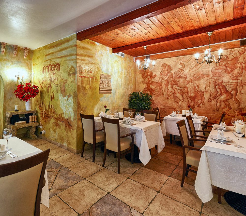 Фирменный салат калабрия - смесь невкусных ингридиентов. Горячее - непрожаренная свинина. Драники - четыре картофельных блина толщиной полсантиметра плюс свинина в виде подливы. Пицца цезарь - непрожаренное тесто и полусырые овощи. Хотя, может так и было задумано. Больше - туда ни ногой.
