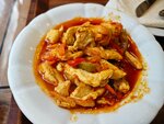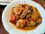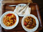 Delicious homemade food. During the Kadikoy walks, my son and I stopped by for lunch. For 465 lire we ate eggplant with meat, chicken with vegetables. Lavash is free.
