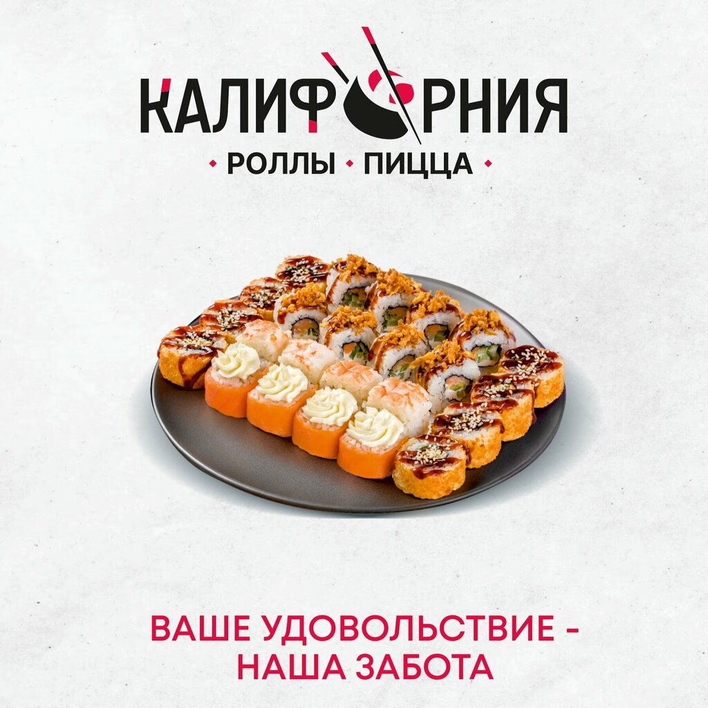 Долго искала сегодня где заказать и роллы и сыну пиццу. Решила заказать в "Калифорнии" и не прогадала, заказ приготовили буквально за 20 минут, привизли также где-то минут за 20, но приехало все горячее, картофель фри отпотеть не успел) Пицца выглядела и пахла отлично! Тесто тоненькое, начинки достаточно! Роллы свежие, запах волшебный! Начинки достаточно, все ровненькие, красивые, а главное очень вкусные! Была очень приятно удивлена качеством заказа и доставки) спасибо за вкусности) обязательно закажу еще! 🤤😃👍