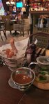 Интересный интерьер, вроде бы вежливый официант, но об отсутствии определённых позиций не предупредила, пришлось уже после выбора менять решение, вкус еды тоже средний - вроде бы ничего, но сказать что вкусно - нет, ну и на полу были остатки еды от предыдущих гостей.