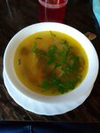 Зашли перекусить в выходной день. Нас приветливо встретили и предложили столик и меню. Грибной суп и картошка фри со свининой на шпажке были прекрасны. Кухне прям респект, однако, некоторые моменты были всё таки сомнительны. Запах туалета придавал лёгкий флёр по всему помещению. И ещё нас обслуживала замечательная женщина, однако у неё не было даже какого-то подобия форменной одежды, хоть фартука какого-то что ли. Складывалось ощущение, что тарелки с едой нам носит тётенька, которая просто чуть раньше пришла с улицы в кафешке погреться. В общем некоторые сомнения в санитарно - гигиеническом вопросе. Радует, что несмотря на опасения никаких проблем с ЖКТ не было.