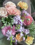 Летний авторский, ароматный букет с пионами Возможны незначительные замены в оттенках или составе, при этом общая цветовая гамма останется прежней. Если замена цветка будет значительной - мы обязательно согласуем с вами все детали.