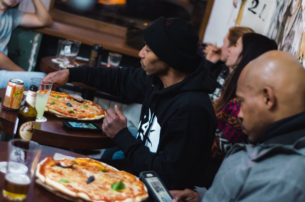 Пиццерия эта, безусловно, не для всех (это слоган самого заведения, если что). Стены её украшают граффити и итальянские фразы, словно обрывки какого-то старинного манускрипта. Зал невелик, но уютен, большой выбор начинок. Пицца здесь вкусная, но тесто…, оно такое тонкое, что буквально рассыпается, напоминая скорее лаваш, чем привычное тесто. О тарелках забудьте – их тут попросту нет. Если придёте большой компанией и закажете сразу несколько пицц, готовьтесь к тому, что стол покроется слоем крошек, а трапезничать придётся либо на салфетках, либо прямо с деревянной доски. Впрочем, обслуживание быстрое, так что долго ждать не приходится, что добавляет плюсов к общему впечатлению