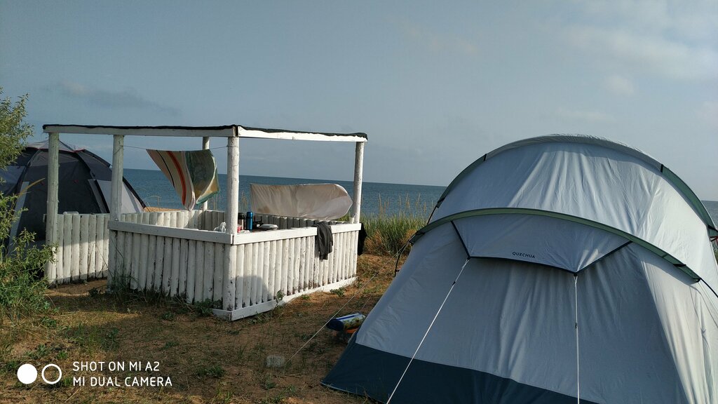 Кемпинг отличный, очень уютное местечко, на территории вода, душ, туалет, оборудованные беседки с водой, холодильником и мангальной зоной. Деревья, где можно укрыться в тенёчке. Очень душевный дядечка - охранник и просто приятный в общении человек. Но было одно НО, или нам так не повезло: вода в море была очень грязная, дул постоянный ветер, на берегу было очень много дохлых медуз и рыбы, которые на солнце просто тухли и ужасно воняло. В море мы так и не зашли ни разу и не искупались. А в остальном было всё хорошо.