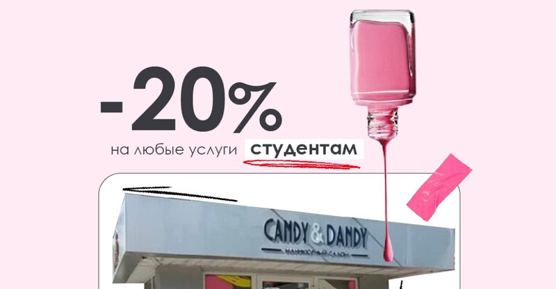 🎓 Учёба учёбой, а красивые ногти — по расписанию В Candy&Dandy Nails студентам скидка 20% на все услуги. Маникюр, педикюр — всё со скидко...