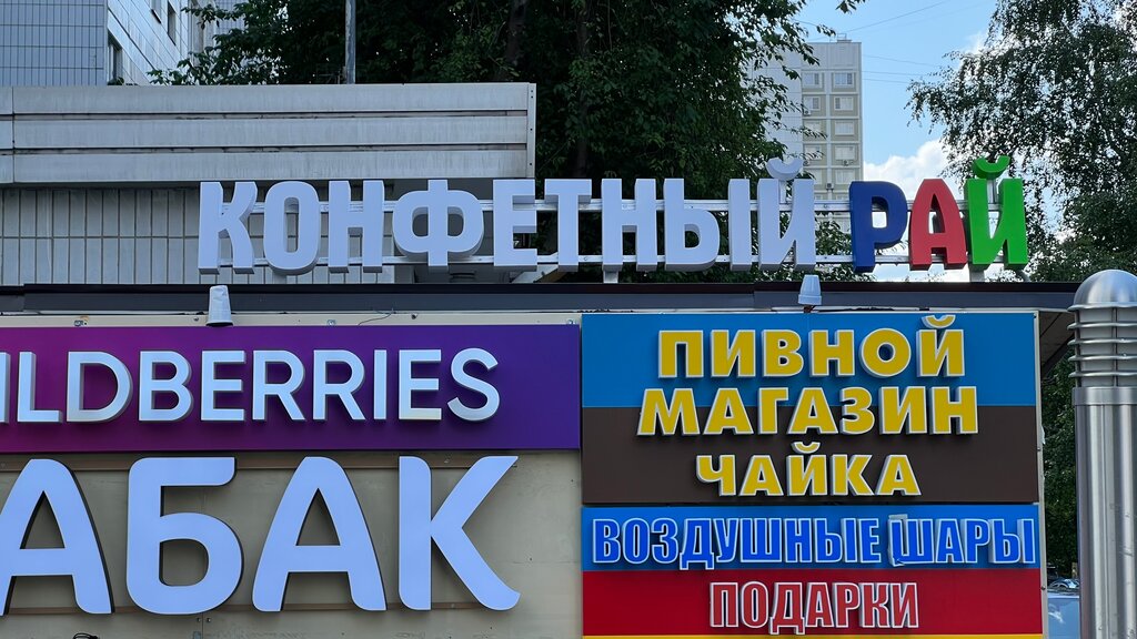 Этот магазин очень маленький. Но там очень большой выбор сладостей. От жвачек, до праздничных конфет. Мне он очень нравится потому что находится очень близко к домам. 1 минута ходьбы и ты уже в магазине.