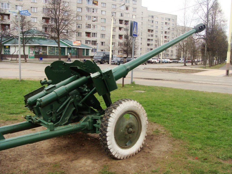 Великолепное военное оружие - пушка д-44, стоит на входе к мемориал Братские могилы, олицетворяет мужество защитников отечества, силу и боевой дух. Дети проходя мимо с удовольствием залезают на её дуло, пытаются все там потрогать, покрутить, открыть.