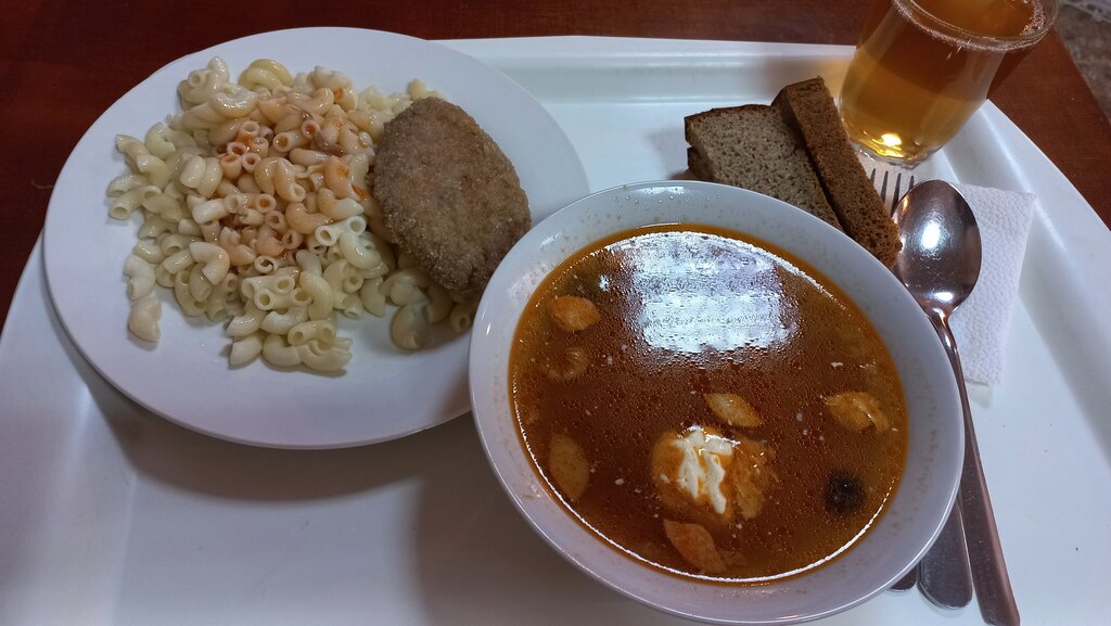 Итоговая оценка 6 из 10 Заведение небольшое, полная посадка и очередь, но девочки молодцы, быстро работают Выбор напитков средний: компот, морс, вода, газировки а-ля советские, чай и энергетики Выбор блюд: много гарниров, средне второго, 3 супа, и большой выбор салатов (за это лайк) Везде чисто Вкус еды огорчил, взял самое красивое на вид - цезарь, да и в этом блюде буквально нельзя испортить, но они смогли - серый на цвет соус оказался сильно пересоленным. Мне постоянно говорят что я ем и готовлю слишком соленную еду - а тут МНЕ любителю соленого было пересолено, так что я думаю многие и не сьели бы ( я съел, не хотел в очереди стоять) вместо салатных листьев капустные, ну короче не вкусно - 2 из 10 Котлета с чем-то сверху - сочная, неплохая котлета, но не супер - 6 из 10 Не знаю как другие позиции, но эти две мне дали такое мнение об этой столовой
