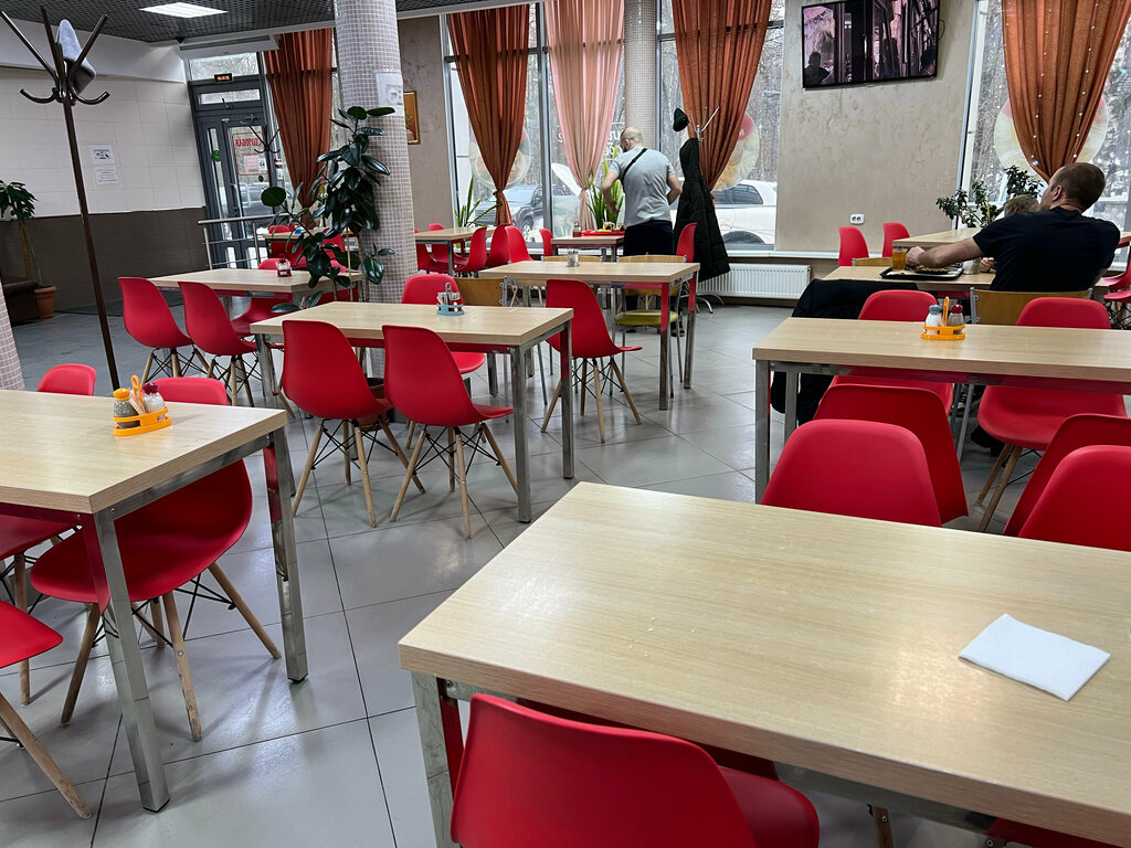 Хорошая столовая! Цены адекватные, еда вкусная, большой выбор первых и вторых блюд. Салатов выбор не очень большой, но это даже хорошо. Лучше 2-3, но чтобы они были свежие. Есть выпечка, чай, кофе. Заказали два комплексных обеда, порции большие, вкусно. Подливка как надо, а не крахмальный клейстер, как бывает в некоторых столовых. В помещении чисто, столы без крошек и пятен!, есть место руки помыть. Единственный недочет, на посуде пятна. Ну, это столовая)) Рекомендую!!!