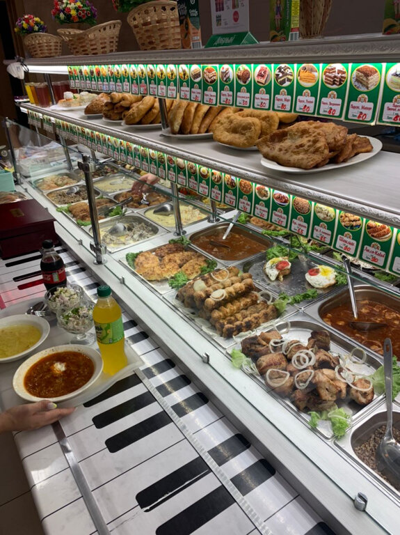Из плюсов только место расположения и большой выбор блюд. Цены средние , как и везде. Взяли харчо, так как не было в наличии борща. Такого отвратного мы ещё не ели. Был конец июля, жара 37 в тени. Кондёр в столовой работал еле еле, а суп был реальный кипяток, невозможно в рот взять, это первое. Второе - это голимая соль и перец, при том что супруг у меня любитель острого и соленого, даже он эту баланду есть не смог. Может я не права , но я считаю что в таких не специализированных на конкретном направлении кухни должно быть все в меру на любой вкус, а соль и перец при желании человек может и сам добавить сколько ему хочется . Куриное люля-да , может оно и натуральное но сухое до невозможности, просто не лезет в глотку ни с чем. Такое ощущение, что его неделю постоянно греют вот и пересушили. Пюре и гуляш из свинины это единственное что более менее съедобно. Не советую эту столовую!