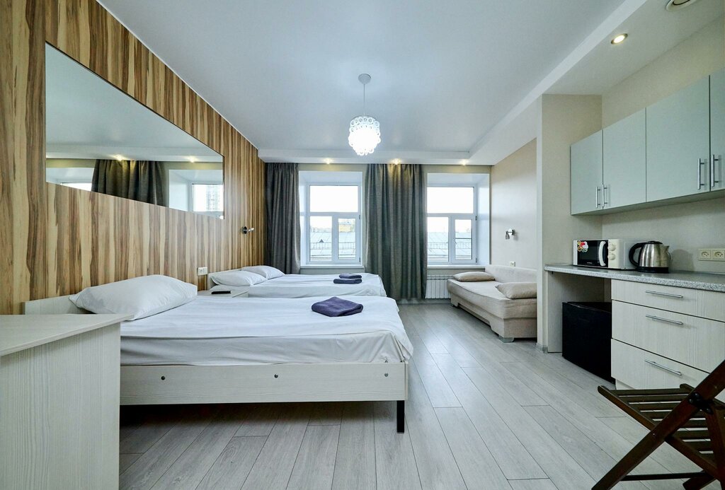 Жили в номере для трёх человек с 18 по 26 ноября. Из плюсов: — близкое расположение к центру — удобные кровати — регулярный вынос мусора и замена полотенец (через день) — в номере были холодильник и микроволновка Из минусов: — в основной комнате и ванной постоянно мигали лампочки (возможно, слабая проводка) — в номере не мыли полы — слабый WiFi