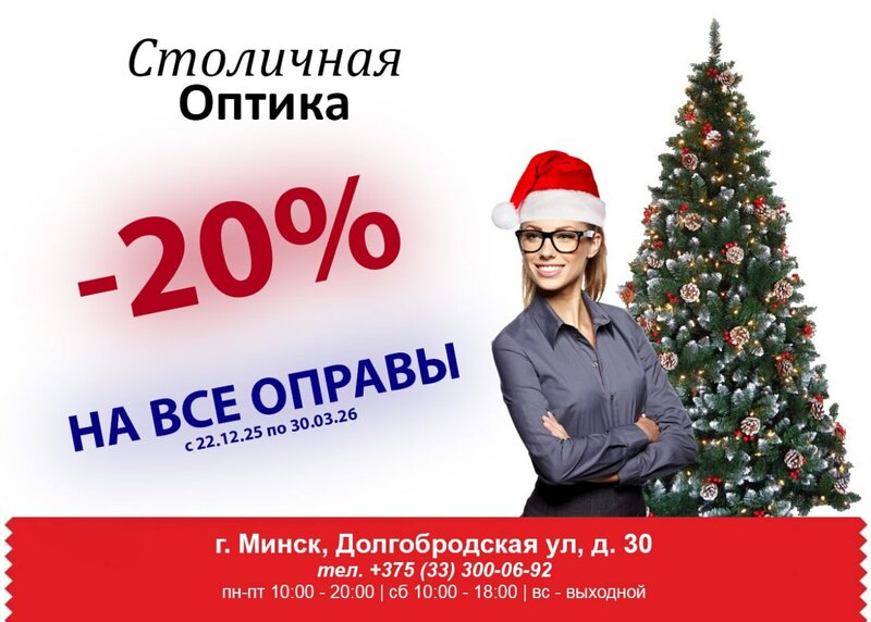 Здравствуйте! «Столичная Оптика». Поздравляет вас с Новым годом и Рождеством! В честь праздника дарим вам скидку -20% на любые оправы. Жела...