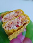 Лаваш, морковка по-корейски, куриное филе, помидоры, огурцы, соус чили, халапеньо