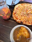 Очень вкусная пицца 🍕 Тесто нежное, не резиновое, тонкое. Начинки очень много. Все свежее, вкусное. Хорошие лимонады собственного приготовления, луковый суп понравился.