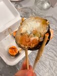 Гунканы не их конёк, риса 90%, рис странной консистенции и странного вкуса, все залиты термоядерным соусом со вкусом карри и грибов, кроме соуса ничего не чувствуется, очень на любителя, своих денег не стоит абсолютно