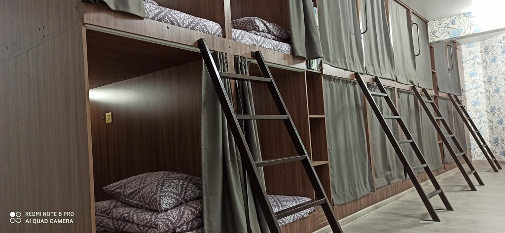 Капсульный хостел с низкими ценами и хорошим сервисом, всем рекомендую! Вход с торца дома, номера общие: есть мужские, есть женские с капсулами. Хостел небольшой, окна в каждом номере. Много шкафчиков большого и малого размеров с ключами и замками.