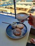 Очень красивое кафе на набережной. С шикарным панорамным видом на море, на яхты, на катера. Очень красиво. Удобные мягкие диваны. Вечером можно потанцевать, музыка танцпол. Подача блюд быстрая. Очень вкусный коктейль с текилой. Мясная солянка большая порция со сметаной и лимончиком. И она была очень горячей. Что я люблю в первых блюдах. Второе блюдо было пюре с рапанами в сливочном соусе. Вкусно и очень красивая подача. С зеленью и цветочком. Очень мило. Порции большие. У меня это был обед. Случайно шла мимо, понравилось визуально, уютное. Зашла. На входе можно изучить меню с картинками. Сразу понятно, как выглядит блюдо. Это большой плюс. Небольшой минус заинтересованность официанта в клиенте. Я долго стояла возле меню на входе. Два раза пролистала, отправила фото друзьям. Никто не подошел, не предложил свою помощь. Ну а когда зашла. Обслужили быстро, рассчитали быстро. Когда уходила, никто не сказал даже до свидания. Или приходите к нам еще. Просто посмотрели, как я ушла. Ну и ладно. Главное все было очень красиво и вкусно.
