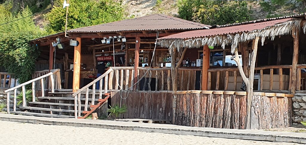 The location is great, the beach is sandy, the entrance to the water is not steep, pebbles. Parking along the road is free, we arrived before lunch, there were a couple of places available. We rented a two-storey bungalow - 5000r for a day, I think it's a great option. There are few people, it is comfortable on the beach. Nearby there is a bar, cocktails, barbecue, pizzas, salads, everything is very tasty. You can sit at the bar, you can order at the bungalow (+15% to the service receipt) It takes 1.5 hours to drive from Sirius. Payment is only in cash or by transfer, Wi-Fi is available in the bar, but it did not always work, so withdraw cash in advance or enable roaming so that the bank's application works. We spent a comfortable day with the whole family, ate, got drunk, and shopped. I recommend it!!!