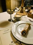 Отличный интерьер, на этом, пожалуй, всё. При почти пустом зале на первом этаже предложили только маленький и неудобный столик. Всё, включая кофе, до столика дошло еле теплым (кухня в соседнем квартале?). Яйцо пашот не додержали и принесли почти холодным, спаржа почти не ощущалась, краба исчезающе мало, соус хорош, как и хлеб. Брускетта с помидорами - хлеб вкусный, помидоры никакие. Канноли - старались, но получилось грустно. Сама трубочка хрустящая, тесто тонкое, но крем жидкий, крупитчатый, очень холодный, десерту не хватает контраста во вкусе. Не заслуживает второго шанса.