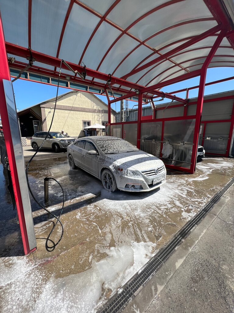Хорошая мойка, отличный напор из пистолета, есть возможность оплатить картой и одной суммой, а потом выбирать воду пену и прочее( там где я живу, в Подмосковье, отдельно все оплачивается), есть пауза (чего нет у нас). Минус одна звезда за большую очередь!
