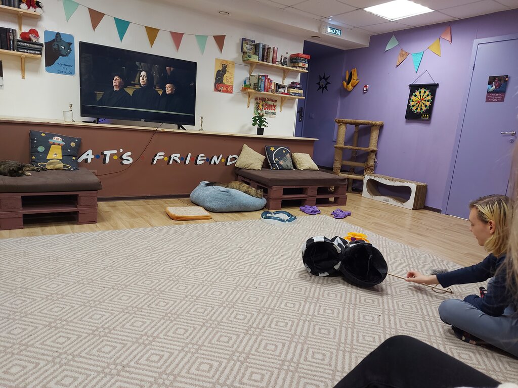 Добрый день, сегодня с сыном выбрались до котокафе, так как обещала ему в дни школьных осенних каникул туда заглянуть! Вот мы и пришли, всё супер! Нас очень хорошо встретил няня кот, все нам рассказал, показал! Котиков много все они ну, просто очаровашки! Со всеми познакомились, всем уделили свое время, всех погладили. Очень много книг, много разнообразных настольно-печатных игр, мы с ребёнком наигрплись вдоволь, есть настольный теннис, он просто суперный, но всегда рядом с нами были кошки и коты они наблюдали за нами! Мой сын всех из погладил, со всеми поиграл, хотя у нас дома есть 2 кота, вернее сказать кошка и кот! Но тут их столько много и все они разные по характеру! Нам очень понравился "Молоток", и кошечка" Зухра", если бы у нас не было своих котов,, то думаю, что из этого замечательного места мы бы ушли с Зухрой. Сын не хотел уходить домой, и мы решили сюда приходить по выходным!