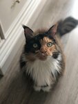 В 18 году брали котика. Если кто помнит историю про мейнкуна с человеческим лицом (Валькирия), - это ее родной брат. За это время маленькая черная клякса выросла в девятикилограммовое черное котище с умным и проницательным взглядом исподлобья, так что те, кто его видят в первый раз, немного пугаются)). Они ж не знают, что наш Хасанчик очень добрый и ласковый. Животных с такой уникальной внешностью еще поискать надо. Не перестаем восхищаться!