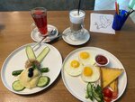 Приходили с мужем на завтрак, очень вкусная овсяная каша 👍🏻 кофе отличный, сейчас пришли тоже на завтрак на омлет и цезарь, хотя время уже 12.50, очень удобно) спокойная атмосфера и приятный персонал 🫶