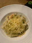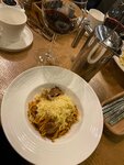 Приятная атмосфера, помещение стильно украшено к празднику. Спокойная негромкая музыка позволила спокойно , не повышая голос общаться за столом. Приветливый и вежливый официант Никита, проконсультировал и помог определиться с вином. Предложил на выбор несколько блюд по нашему запросу. Во время обслуживания был тактичен. Мы брали пасту с креветками и пасту с олениной. Нам понравилось . Обязательно вернемся .