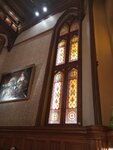 Очень атмосферное место, как-будто все пропитано художествами- стены, потолки, лестница, витражные окна. Были в компании члена Московского Столичного Клуба, благодаря этому столик был на втором этаже, в красивом зале, с очень внимательным официантом Юрием, ему отдельный респект. Кухня этого ресторана заслуживает особое внимание, от фаршированных крылышек до изысканных десертов. Мне здесь не хватило только Кота-Бегемота и Фагота.