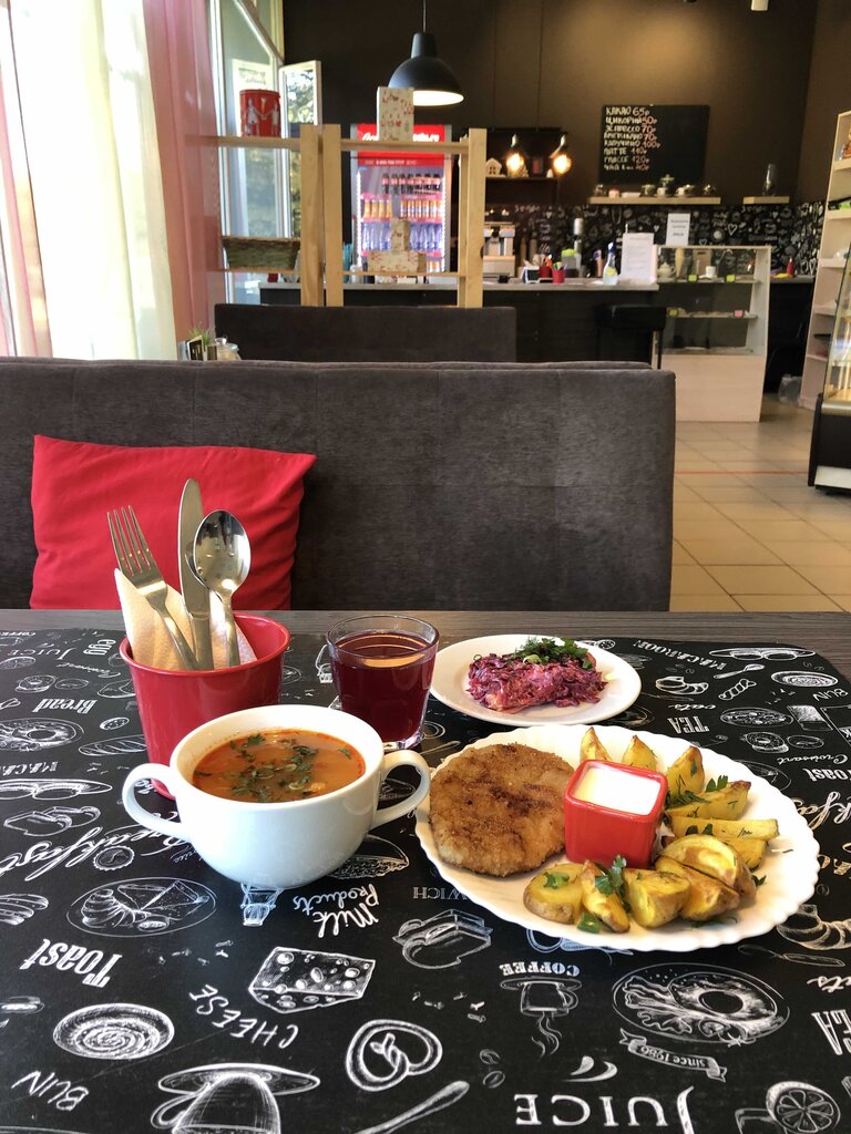 Заказывали поминки на днях в этом кафе. Нас было около 30 человек, не смотря на то что кафе кажется небольшим, размещение было организованно очень комфортно. Было предложено несколько видов меню по цене и содержанию, выбрали одно из дорогих по 1650 рублей Всё очень вкусно, сытно и стол выглядел достойно👍🏻 Очень благодарны, за то что персонал с пониманием отнеслись ко всем нюансам и подошли очень профессионально. Атмосфера в кафе очень уютная спокойная, всё чистенько. Большие панорамные окна и потрясающий вид на набережную Комсомольского канала. Алкоголь приносили свой, с нас никаких % за это не брали. Так же принесли с собой конфеты, девочки аккуратненько всё разложили по тарелкам и поставили на столы. Еда свежая, вкусная все были очень довольны. Спасибо за ваш труд, за достойный и профессиональный подход!