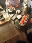 Приятная атмосфера , очень много людей , популярное место , только не понимаю почему 🤷 . цены высокие , моти маленькие и не вкусные , в Астрахани есть заведения где и вкусные , роллы тоже не очень .