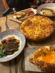 Заведение которое поразило нас и приятным интерьером, обслуживанием, блюдами, подачей. Все было очень вкусно, даже несколько необыкновенно. Борщ принесли в горшочке, но он был в меру насыщенными с приятной телятиной, плов просто восхищение. А хачапури очень нежное и вкусное, в сочетании с чаем. Официант заранее спросил, полить ли нам хачапури медом, мы решили 50/50. Сын же отметил то, что официант заранее поинтересовался о меде, тем самым исключил ситуацию аллергии и т.д. Блюда очень вкусные, но учтите,что и чек будет не скромный.