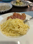 В будний вечер ресторан полупустой, кроме нас было 2-3 столика. При этом ожидание блюд составило более часа, об этом не предупредили. Паста была из тонких макарошек-коротышей — переваренная и слизистая, почти как каша, порция намного меньше представляемой в голове за такую сумму, но на вкус в целом норм. Настойки хорошие, крепенькие, не как компотик. Интерьер красивый, в туалете очень чисто. Заслуженная двойка с плюсом.