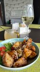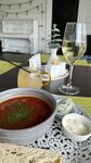 Отдыхали на веранде данного ресторана.Очень красиво и приятно.Борщ подают с салом и сметаной в отдельных пиалах,что порадовало.Вино в меню было в большом ассортименте,а то что-то часто стало бывать,что самое доступное вино быстро заканчивается.Щечки потрясающие -тают во рту ,советую!!!Жаркое хорошее,а вот салат с баклажанами -очень много кляра,но это по-моему вкусу.