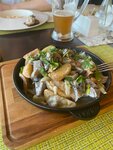 Меню не большое, так ещё и много чего нет в наличии. Хотелось бы чего-то аутентичного городу, но это не про это место... Еда так же на 3 балла, максимум, явно не уровень хорошего ресторана. Порции маленькие, состав специфический, явно выдумка повара, а не классический рецепт. Взял сковороду по деревенски, одни баклажаны, грибы, пол картошины, 1/4 перца и куски ГОТОВОГО бифштекса, его не томили с овощами, его просто порезали надеюсь остался не от предыдущего клиента...