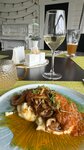 Не знаю почему все хвалят это место. Решили прийти поужинать после теплоходной прогулки. Воскресенье,вечер. Грязно,приборы валяются на полу.Может все уже расслабились и забили на работу. Кофе нет. Салат с подкопченным лососем это вообще полный ужас. Принесли с таким запахом,что уже можно было сразу отравиться. Сырая рыба подпаленная из горелки выглядела так себе. Яйцо пашот,которое совсем не пашот,но это ладно. Прокисшая,вонючая заправка прикрытая листьями салата. Как повар сказал,что это манговая заправка такая. Но манго там и не пахло. Цезарь тоже странный. Сковородка,паста вкусные к этому нет вопросов. Коктейль зелёный попугай это вообще тоже шедевр в ковычках. Не знаю кто придумал класть в него шарик мороженного,которое начинает отсекаться хлопьями и выглядеть как прокисшее молоко.В общем это одно из худших мест где мы были за последнее время.