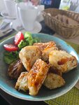 Еда съедобная. Обслуживание ужасное, официантам не интересно обслуживать гостей, сидят болтают, посуду грязную со стола убирают по пол часа. Блюда выносят вперемешку, мне принесли одновременно салат и суп, маме принесли единственное заказанное блюдо когда уже все поели.