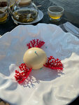 Отмечали юбилей, столик заказала за день до события .бронировала на сайте .удобно и все понятно.предварительно посмотрели на сайте меню.определились с выбором блюд.сравнила с подобным рестораном .цены более демократичны в Чайке.приехали после прогулки на катере.чуть заранее.встретившие девушки на входе ,на ресепшене ,были приветливы и предложили воспользоваться гардеробом .пригласили за столик,который предназначался под наше торжество .хоть мы и прибыли в ресторан более чем за полчаса,никаких сложностей у нас не возникло,не нужно было бы ожидать часа брони . ресторан понравился и обстановкой,и чистотой,и все вокруг опрятно ,все на своих местах у сотрудников заведения.много зелени для разделения зон между соседними столиками,растения выполняют роль перегородок .создают приятную атмосферу.окна панорамные.интересно наблюдать из окна за течением реки,ресторан находится полностью на воде.из меню много чего было интересно попробовать.решили брать и холодные, и горячие блюда,и десерт ,конечно с кофе.понравилось всё.из холодных закусок муж выбрал оливье с говядиной,а я выбрала сыровяленную говядину с копчёной свеклой и русском из пармезана,с шариком мороженного из белых грибов.вкусное ,необычное и ароматное блюдо. на горячее брали тоже разное.картофельный дранник с форелью малосольной,со сливочным сыром и хреном ,мужу очень понравился вкус ,сказал ,что неожиданно сытно и вкусно.я заказывала на горячее запечённую форель с шафраном и тигровыми креветками.все это было с ризотто.мне понравились все блюда .первые ожидали не долго.вторые подавали достаточно горячими,сразу как только мы закончили с холодными закусками. из напитков мы выбрали кувшин морса свеже -приготовленного.когда определялись с десертом,то наша официантка Екатерина ,подробно рассказала ,из чего каждый десерт.выбор пал на Жемчужину и чизкейк с кремом на овсяном корже.из кофе был капучино и американо.все было вкусно.сервировка на высоте.приборы подавались вовремя.бокалы ,тарелки -все чистое .менялись приборы и тарелки на чистые по мере необходимости.то есть очень быстро.персонал работает оперативно.официантка Екатерина на удивление ничего не упустила при заказе блюд,хотя все воспринимала на слух .не под запись . На день рождения от ресторана сделали скидку в 10 % на весь чек .приятный бонус.забыла про хлебную корзинку.очень вкусные булочки.к ним подали намазывать на них пасту творожносырную с чесноком..тоже нам понравилось.чек получился на 7тыс руб.с учётом бонуса в 10% .в д.р..приятный бонус.еще и за приятно проведенное время с быстро подаваемыми блюдами.оценку поставлю отлично.