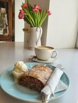 Ароматный, мягкий, в меру горьковатый кофе. Свежий, полный начинки, сочный штрудель. Сладкий, нежный шарик мороженого. Уютная атмосфера. Приветливая и приятная бариста. Буду забегать