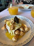 Приятное местечко, правда удивила посадка, на мой взгляд не хватает столиков на 1-2 человека, но это мелочи. Ценник высоковат, но, полагаю это связано с предлагаемым бокалом игристого, а если не идете, все равно, батенька, извольте оплатить) хороший выбор вариантов завтрака и много каш, которые еще хочется попробовать. Мой выбор пал на тост с беконом + сделала доп из жареных вешенок кимчи, приятный соус матча и нежный хлеб - одобряю, а вот гречка зеленая с пармезаном и яйцом оказалась сухая, хотя что ждать от «полезной еды», она, кстати без глютена, а я и думаю, чего не хватает для вкуса?! В целом впечатление приятное, обслуживание быстрое. П.с. Смотрите фото блюд меню на сайте- будет максимально понятно что это. Фото и реальность- полностью соответствует.