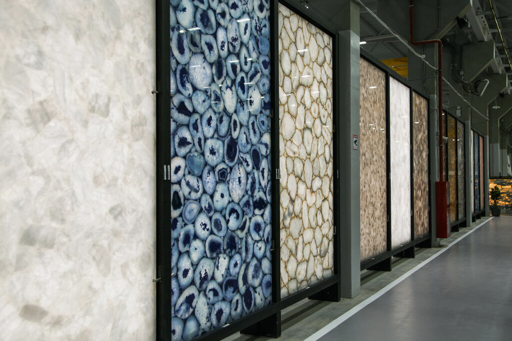 Самый большой шоу рум натурального камня, что приходилось увидеть Профессиональная компоновка камней/слэбов, демонстрация. Можно и самостоятельно ходить в шоуруме. Есть товары с дисконтом, есть готовые изделия. Периодически проводятся демонстрации для дизайнеров и иных заинтересованных. Интересно очень!.