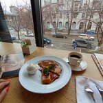 Вкусный кофе, уютная обстановка.приличный завтрак. Очень достойно для такого небольшого заведения