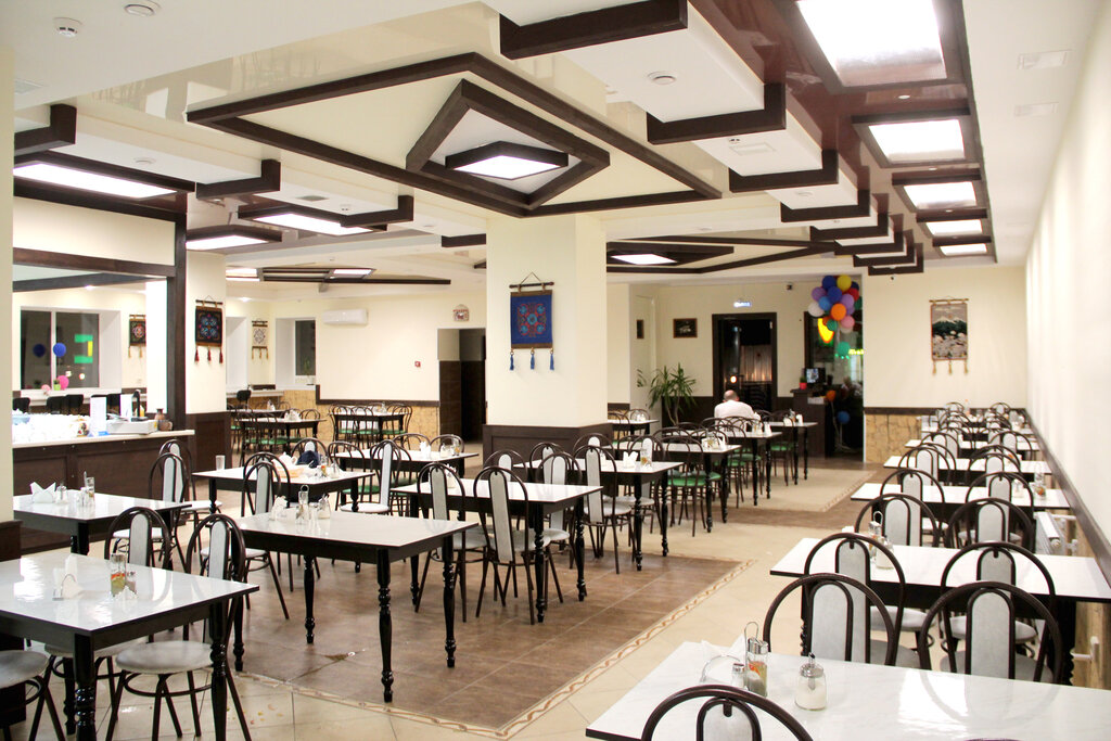 Место про еду , здесь вкусно блюда с мясом сытно и недорого. Здесь я часто обедаю мне нравится. Это кафе обычное национальное. Интерьер простой уставший. Обслуживание нормальное.